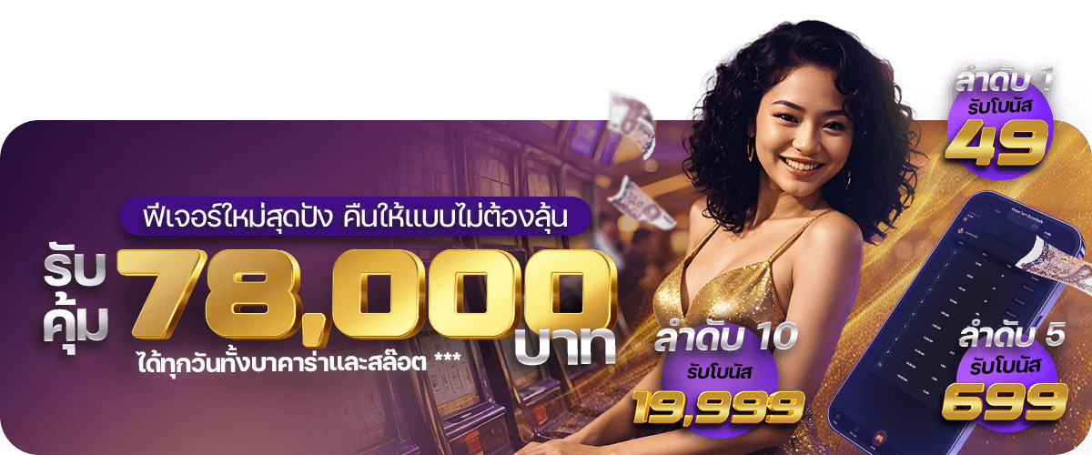 ตอบ : - โบนัสต้อนรับสมาชิกใหม่ 100% - คืนยอดเสีย 0.5% ทุกยอดการเล่น - แนะนำเพื่อนรับค่าคอมมิชชั่น